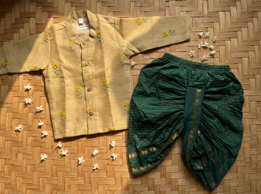Traditional Indian Multi floral Autumn with Bottle green checks kurta dhoti baby boy ethnic wear