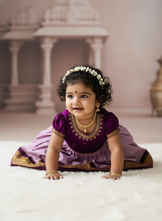 Wine with Lavender baby girl traditional ethnic dress