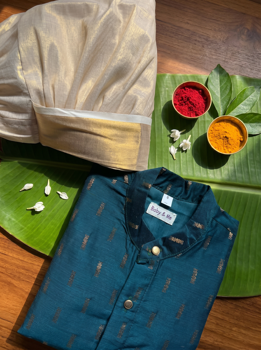 Traditional Blue and Gold Kurta Dhoti for Boys – Traditional Ethnic Wear for Baby Boy