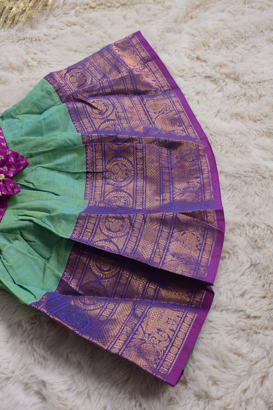 Daksha - Chocolate brown and Pink kanchi cotton south Indian ethnic wear langa blouse for baby girl