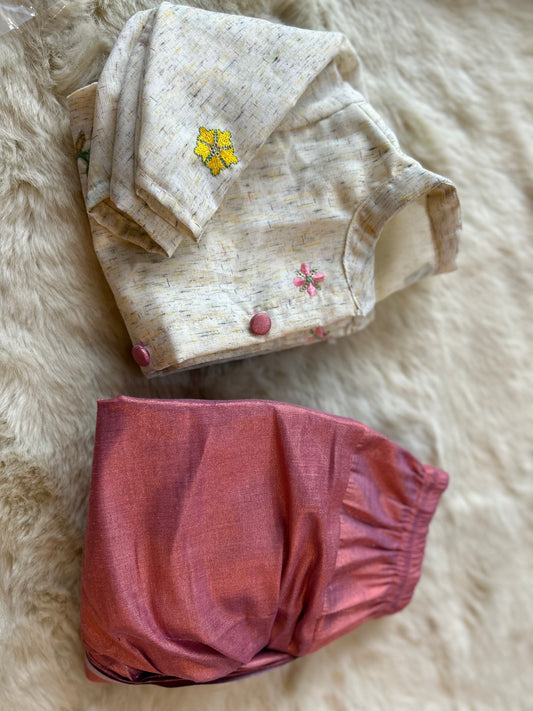 Cream with blush floral embroidery kurta dhoti ethnic wear for baby boy