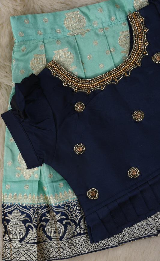 Dark blue with light blue hand work embroidery langa blouse / pattu pavadai / lehenga ethnic wear for baby girl