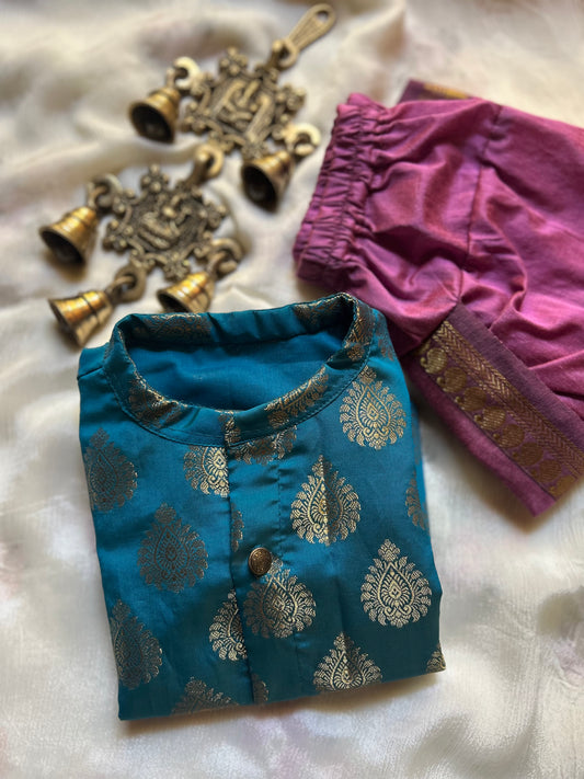 Ananda blue with rose pink shade kurta dhoti ethnic wear for baby boy