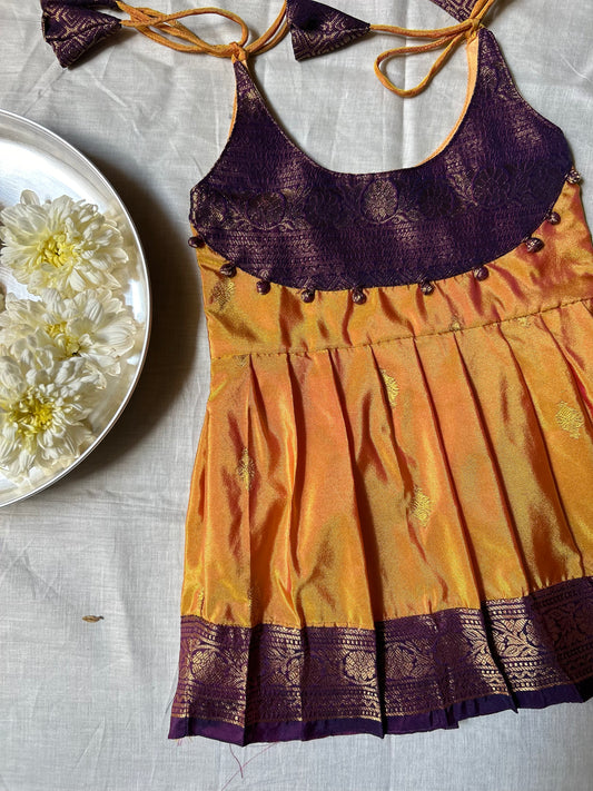 Ambuja - Golden Yellow with deep purple pattu silk ethnic wear for baby girl