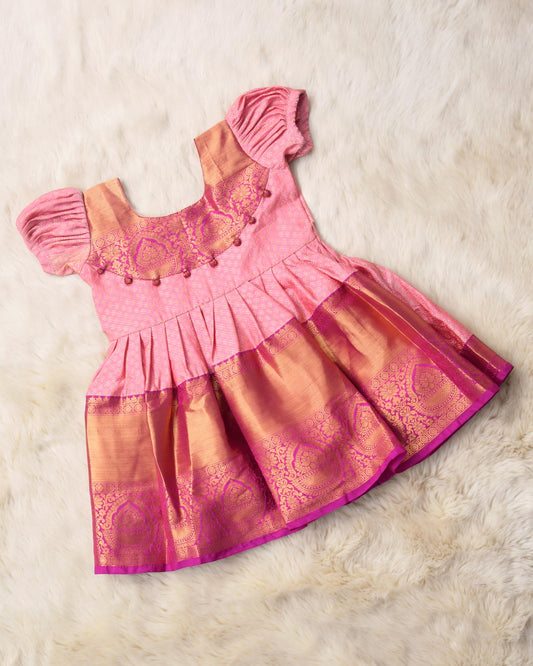 Anantaa - Light pink with magenta pattu silk ethnic wear for baby girl