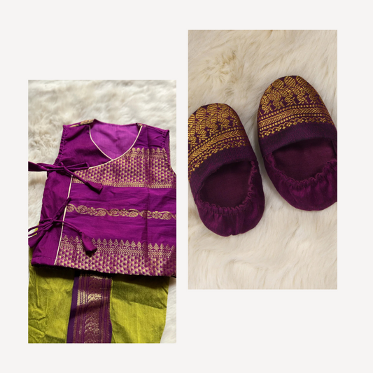 Green and wine kanchi Butta - mom and son combo set