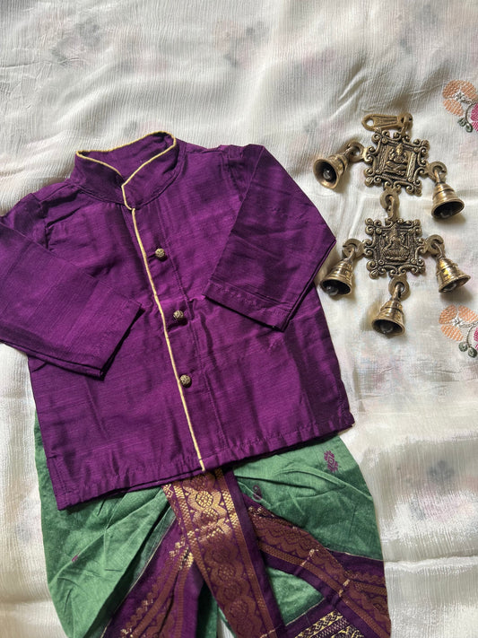 Green and wine kurta dhoti ethnic dress for baby boy