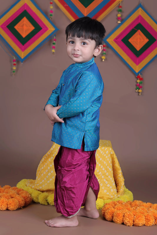 Aqua Blue and Pink Silk kurta dhoti ethnic dress for baby boy