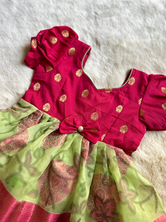 Kayra - pink and peacock green kanchi cotton South Indian ethnic wear langa blouse for baby girl