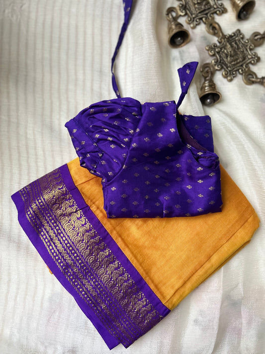 Kasturi - purple and mango yellow kanchi cotton south Indian ethnic wear langa blouse for baby girl