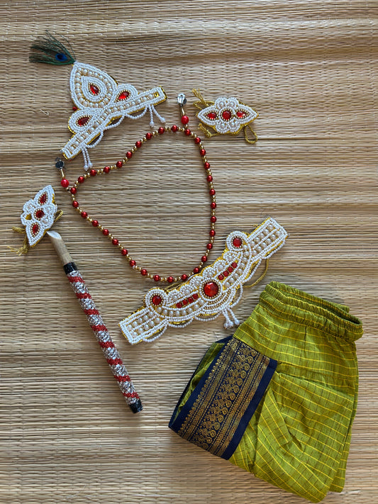 Krishna Dress Set for Baby Boy | Janmashtami dress | Krishna dress for newborn | Green with wine