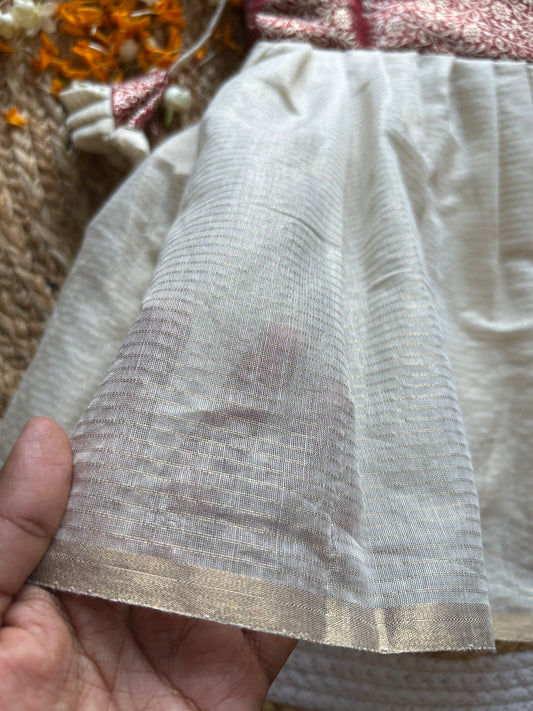 Kerala Special - red with milk white frock for festivals with head bow, shoes and undie