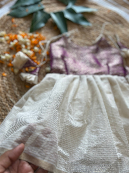 Kerala Special - Wine with milk white frock for festivals with head bow, shoes and undie