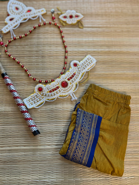 Krishna Dress Set for Baby Boy | Janmashtami dress | Krishna dress for newborn | mustard with blue dhoti