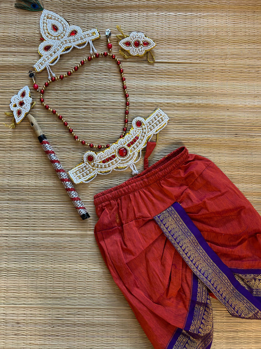 Krishna Dress Set for Baby Boy | Janmashtami dress | Krishna dress for newborn | Rusty orange with wine