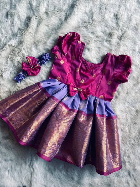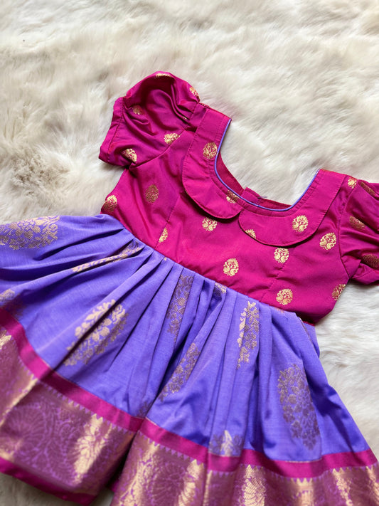 Magenta Pink and Lavender - Silk Ethnic Wear for Baby Girl