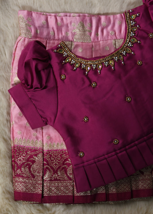 Magenta with baby pink hand work embroidery langa blouse / pattu pavadai / lehenga ethnic wear for baby girl