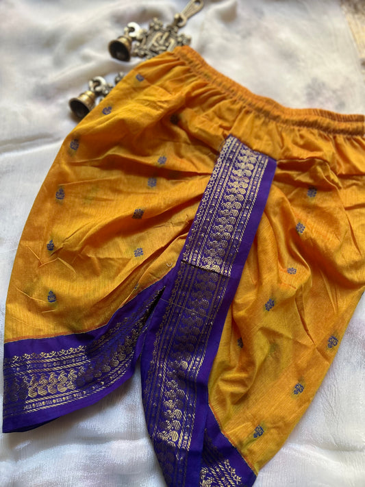 Mango yellow with purple border dhoti baby boy ethnic bottom wear