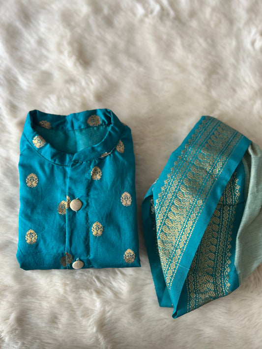 Aqua green shades Semi Silk Baby Boy Kurta Dhoti Set