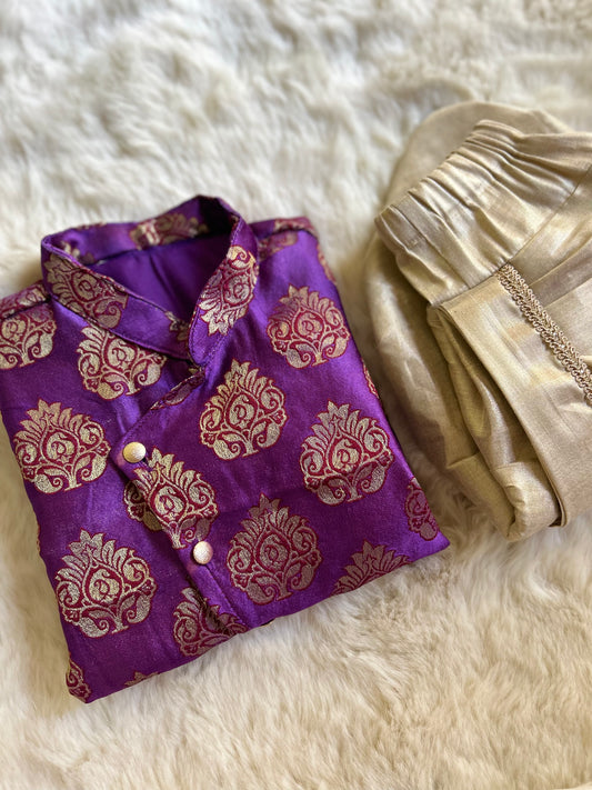 Artistic Purple Silk kurta with gold dhoti ethnic wear for baby boy
