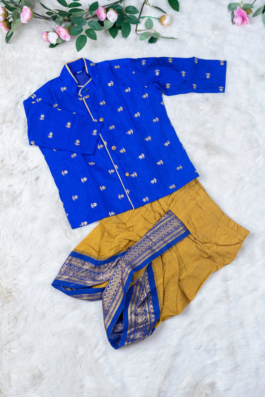 Mustard yellow and blue embroidered kurta dhoti ethnic dress for baby boy