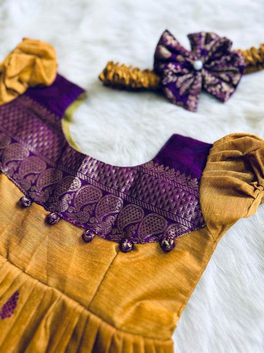 Mustard and wine ethnic frock for baby girl