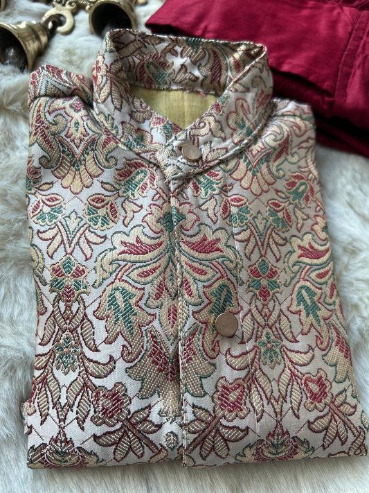 Multicolor thread woven cream and maroon kurta dhoti ethnic wear for baby boy