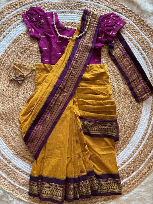 Mustard yellow and wine - Ready to wear saree for kids Ethnic wear for baby girl