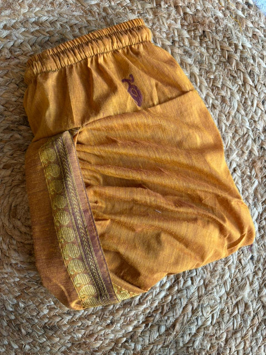 Mustard yellow with wine border cotton silk dhoti baby boy ethnic bottom wear