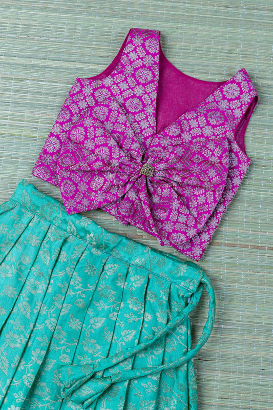 Banarasi designer bow blouse ethnic wear for baby girl