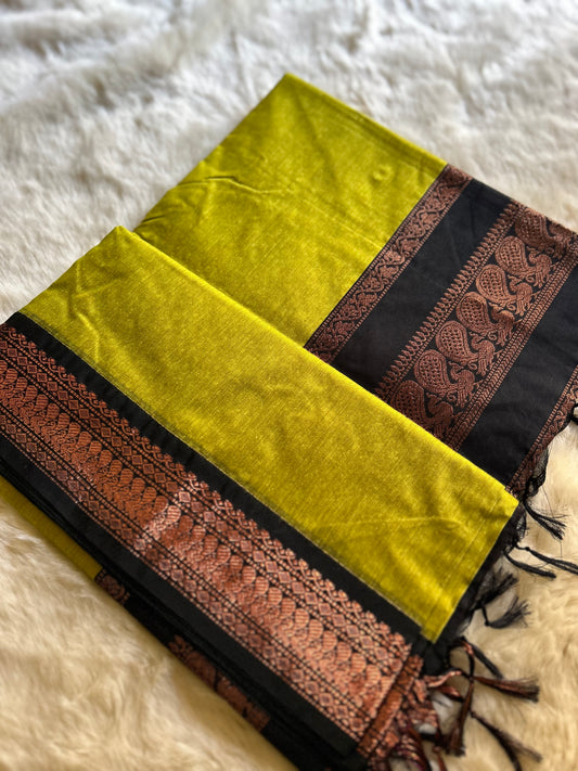 Black and Green - Premium Cotton Silk Saree with Contrast Blouse