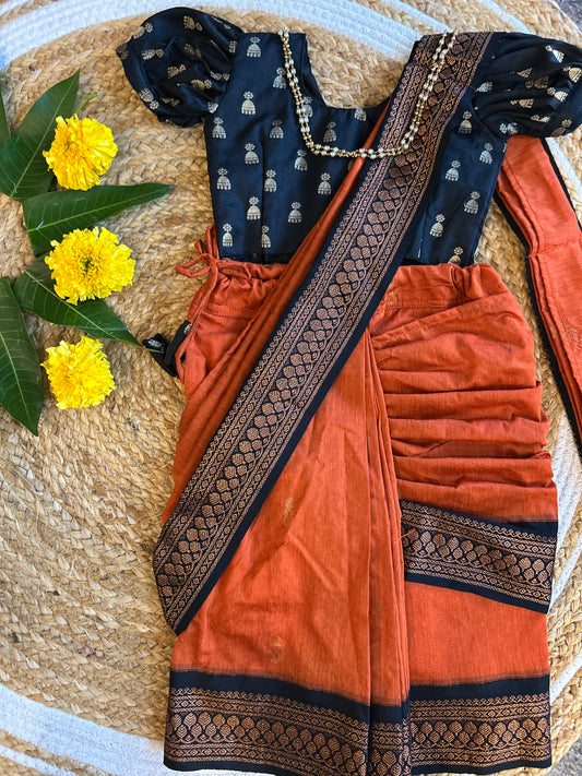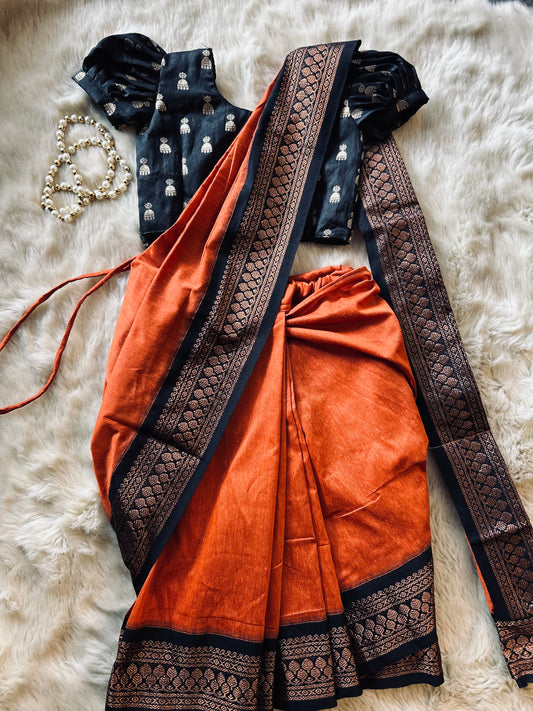 Black and orange - Ready to wear saree for kids Ethnic wear for baby girl
