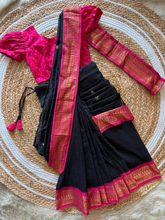 Black and Dark Pink - Premium Cotton Silk Saree with Contrast Blouse