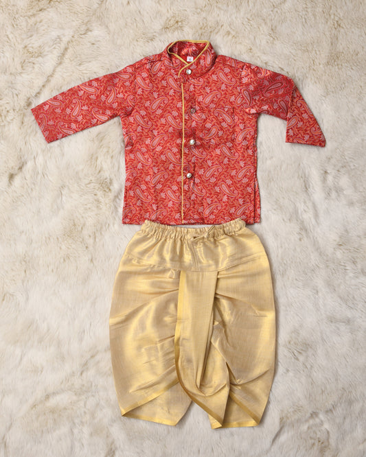 Red with gold shade kurta dhoti ethnic wear for baby boy