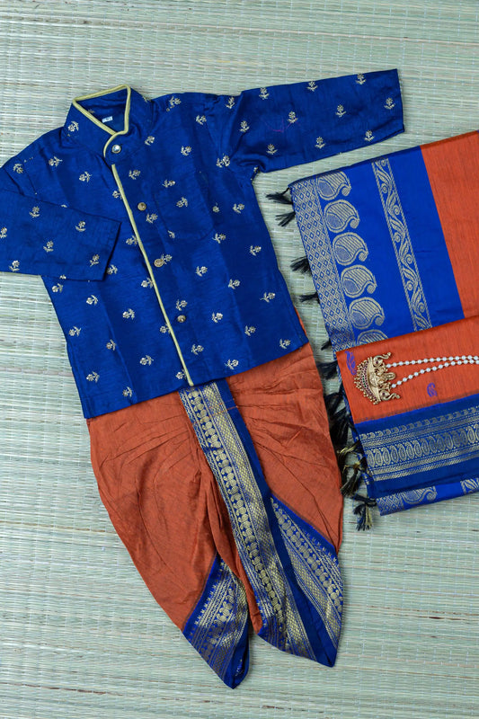 Royal blue with gold kurta dhoti ethnic wear for baby boy