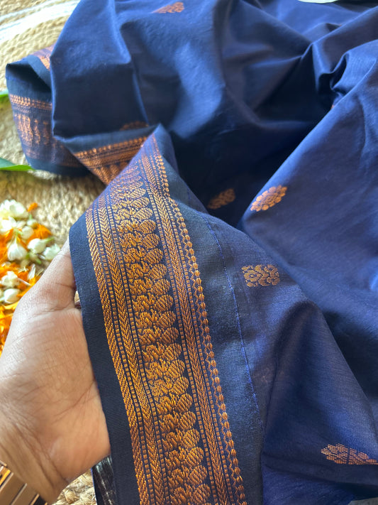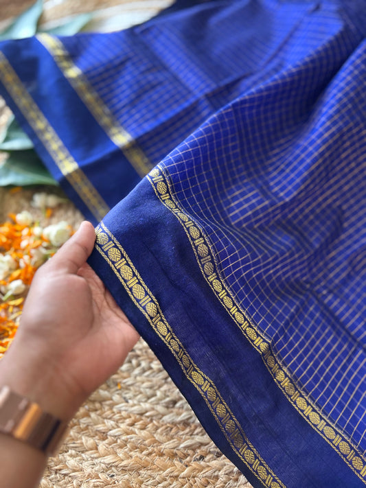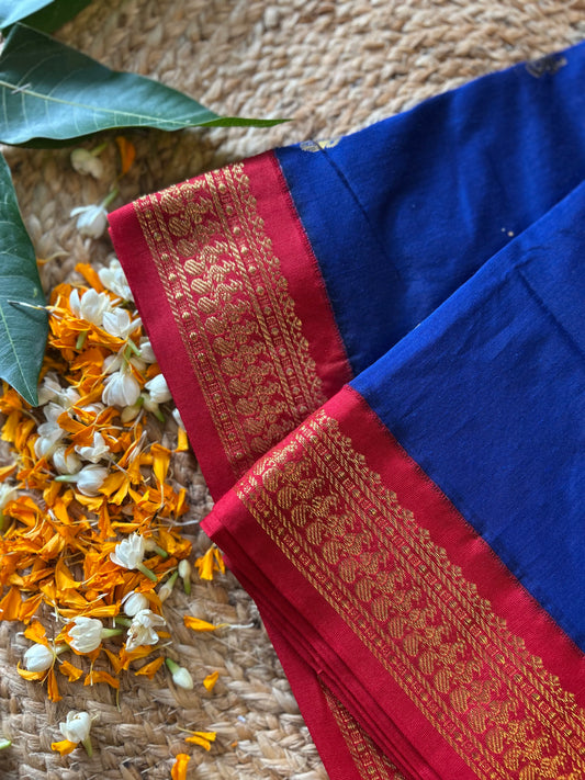 Royal Blue with maroon border with zari work - Premium Cotton Silk Saree with Contrast Blouse