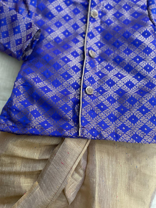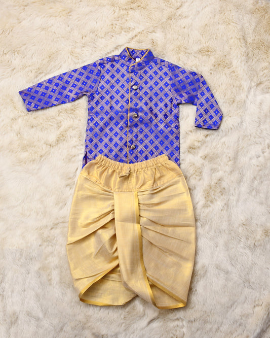 Royal blue with gold shade kurta dhoti ethnic wear for baby boy