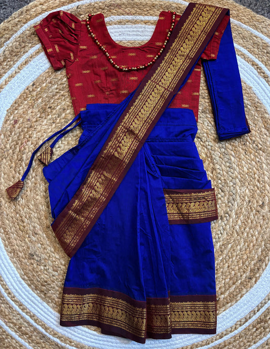 Royal Blue and maroon - Ready to wear muttukattam saree for kids Ethnic wear for baby girl