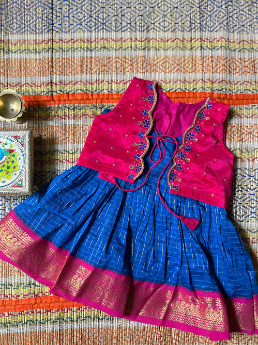 Royal blue and pink sleeveless frock and maggam work embroideried jacket ethnic wear for baby girl