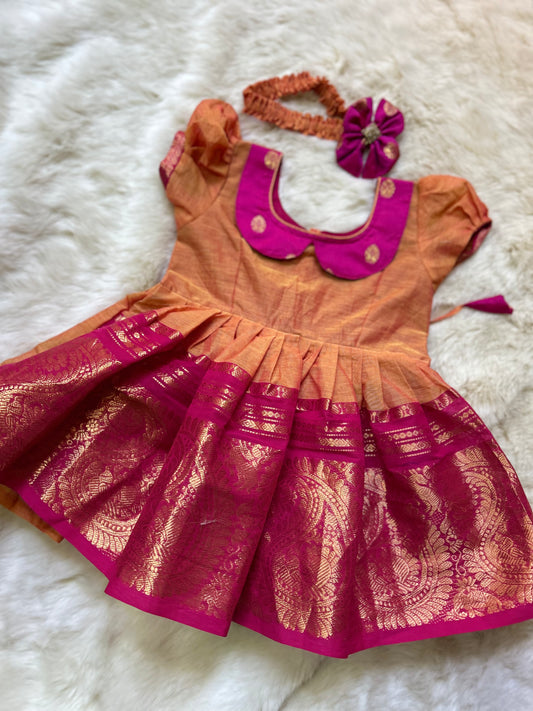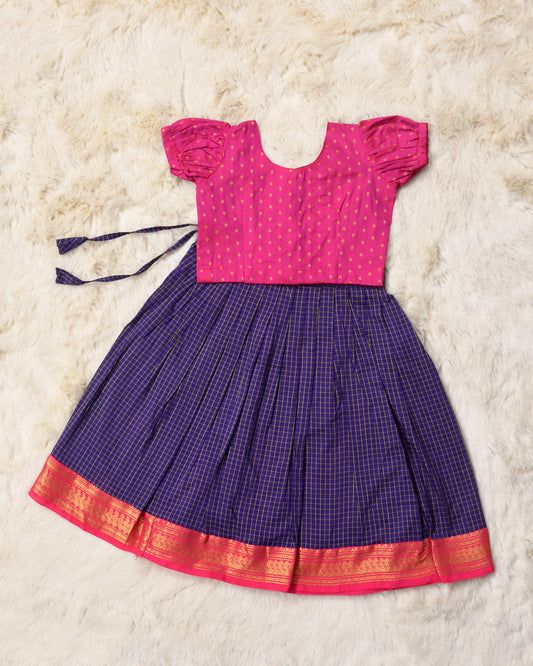 Saraswati - Magenta and baby pink kanchi cotton south Indian ethnic wear langa blouse for baby girl