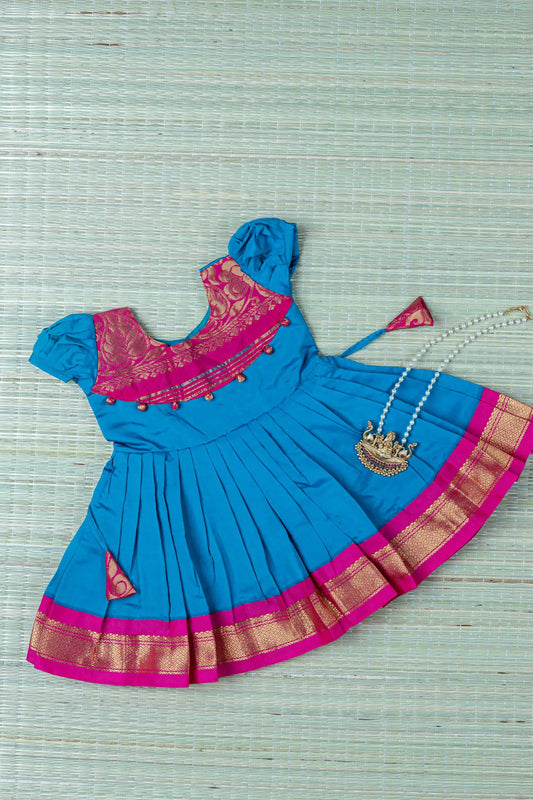 Shanvi - Purple with pink pattu silk ethnic wear for baby girl