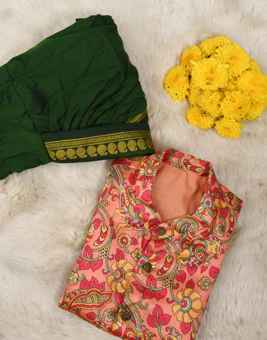 Traditional Indian Kalamkari Musk Lorikeet green Silk Kurta Top