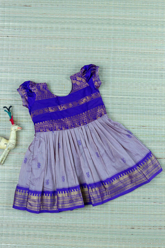 Tripura - sapphire blue and pale blue traditional langa blouse kamadenu cow embroidered zari border ethnic wear pattu pavadai silk for baby girl