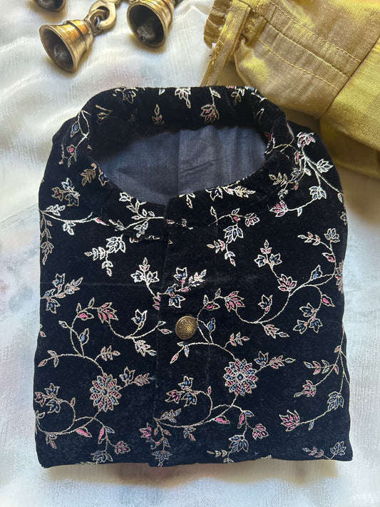 Velvet black with gold Kurta Dhoti ethnic wear for baby boy