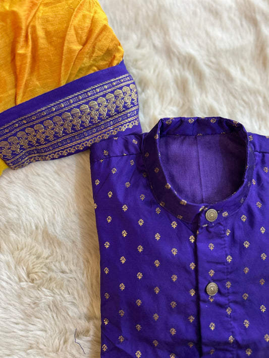Violet semi silk kurta baby boy ethnic Kurta with green dhoti set