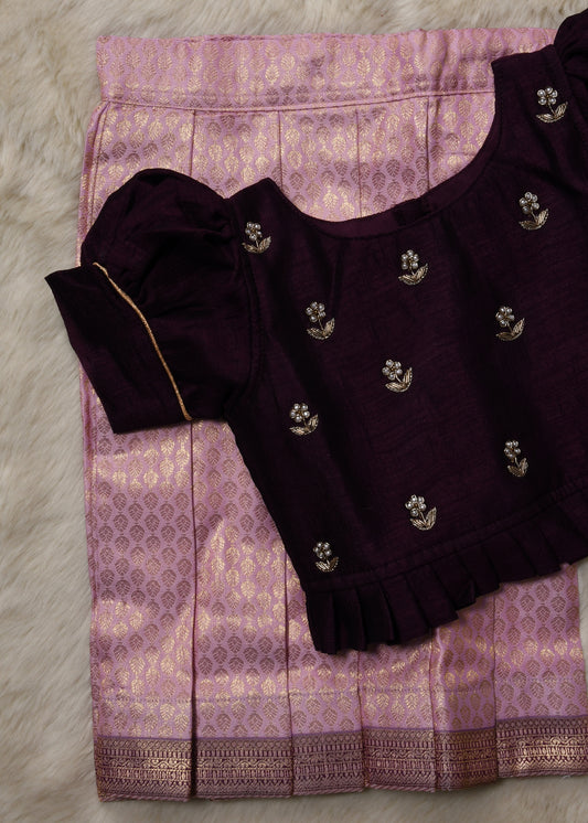 Wine and onion pink hand work embroidery langa blouse / pattu pavadai / lehenga ethnic wear for baby girl (Small border)