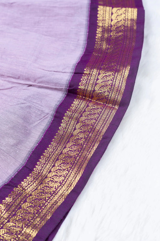 Wine with bluish purple (Vintage Collar) - Kanchi Cotton Silk South Indian Ethnic Frock for Baby Girl