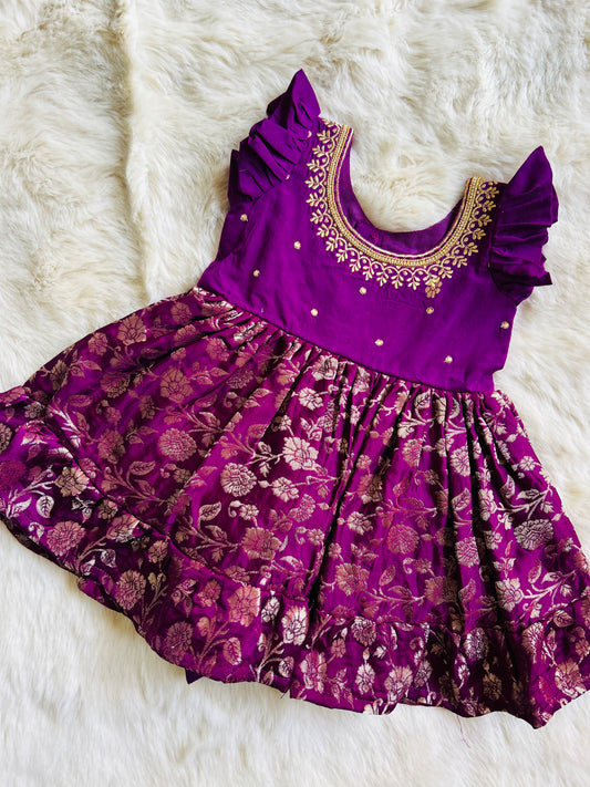 Wine Banarasi Silk Ethnic Wear for Girls / Baby Girl