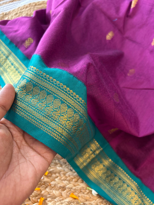 Wine with bottle green - Premium Cotton Silk Saree with Contrast Blouse