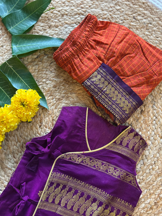 Wine and Rusty orange - Angrakha kurta dhoti ethnic wear (Sleeveless) for baby boy